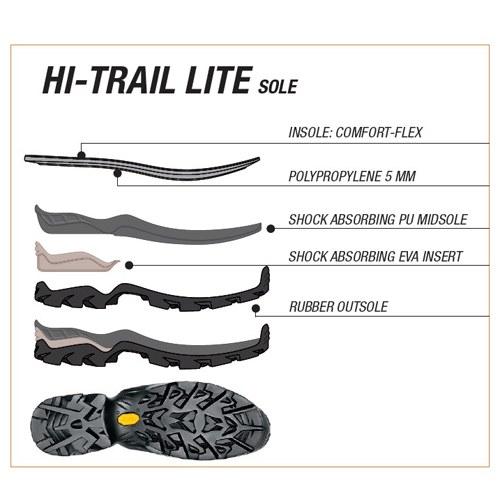 Hi-trail lite鞋底系统,带给我强力的缓冲减震能力,自家字母标示,让你倍感面子十足,同时时尚感十足。