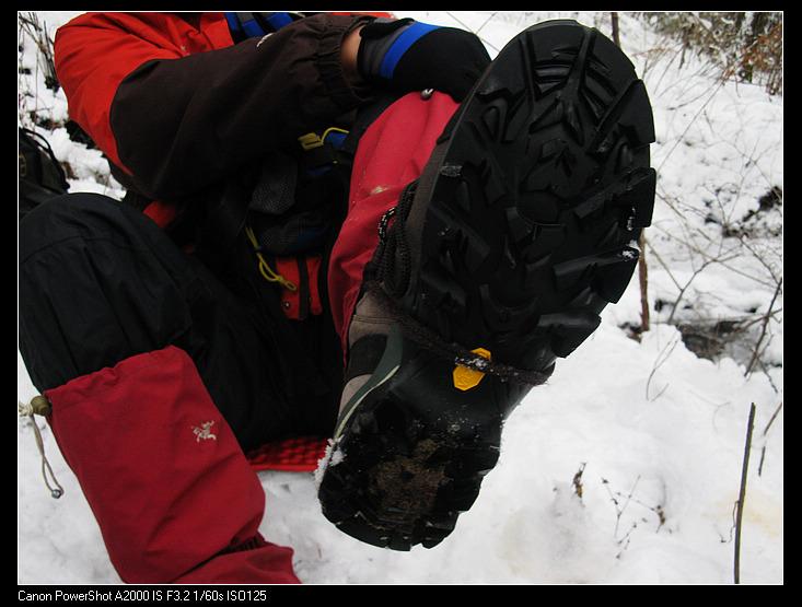见识一下,全防水袜套,即使两天的重装雪地穿越,越河数条,泥泞淌过鞋里面,没有丝毫潮湿感,不得不赞叹Gore-Tex
