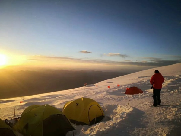 凌晨5点,他们艰难地走出了帐篷,在大风中穿戴好了装备,出发。大风一直伴随着他们,朝阳照在山顶上,但没有给他们带来丝毫的暖意。他们穿上了所有的衣服,依然很冷,脚趾和手指早已在一个小时前冻得麻木。风也没有丝毫减弱的意思,如果再继续攀爬,冻伤是不可避免的了,几人商量过后只好下撤,总得给下次留点借口不是。